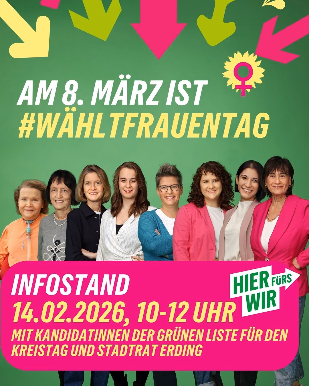Unser Infostand am 14.2. am Schrannenplatz in Erding steht daher ganz unter dem Motto #WähltFrauentag. Lernen Sie unsere Kandidatinnen für den Kreistag und für den Stadtrat Erding kennen. Und lassen Sie sich von unseren Aktionen überraschen, die wir dort präsentieren.
