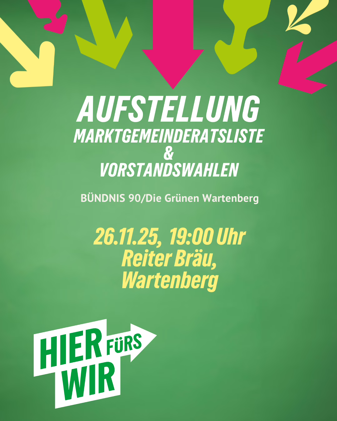 Der Ortsverband Wartenberg lädt ein zur Vorstandswahl und zur Aufstellungsversammlung für die Marktgemeinderatsliste.